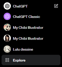Tu arrives alors sur la merveilleuse page des GPTs 🤩 Ici, tu pourras créer tes propres agents, explorer ceux qui ont été préconfiguré par OpenAI et dès la semaine prochaine, ceux qui ont été créés par la communauté via le GPT Store !